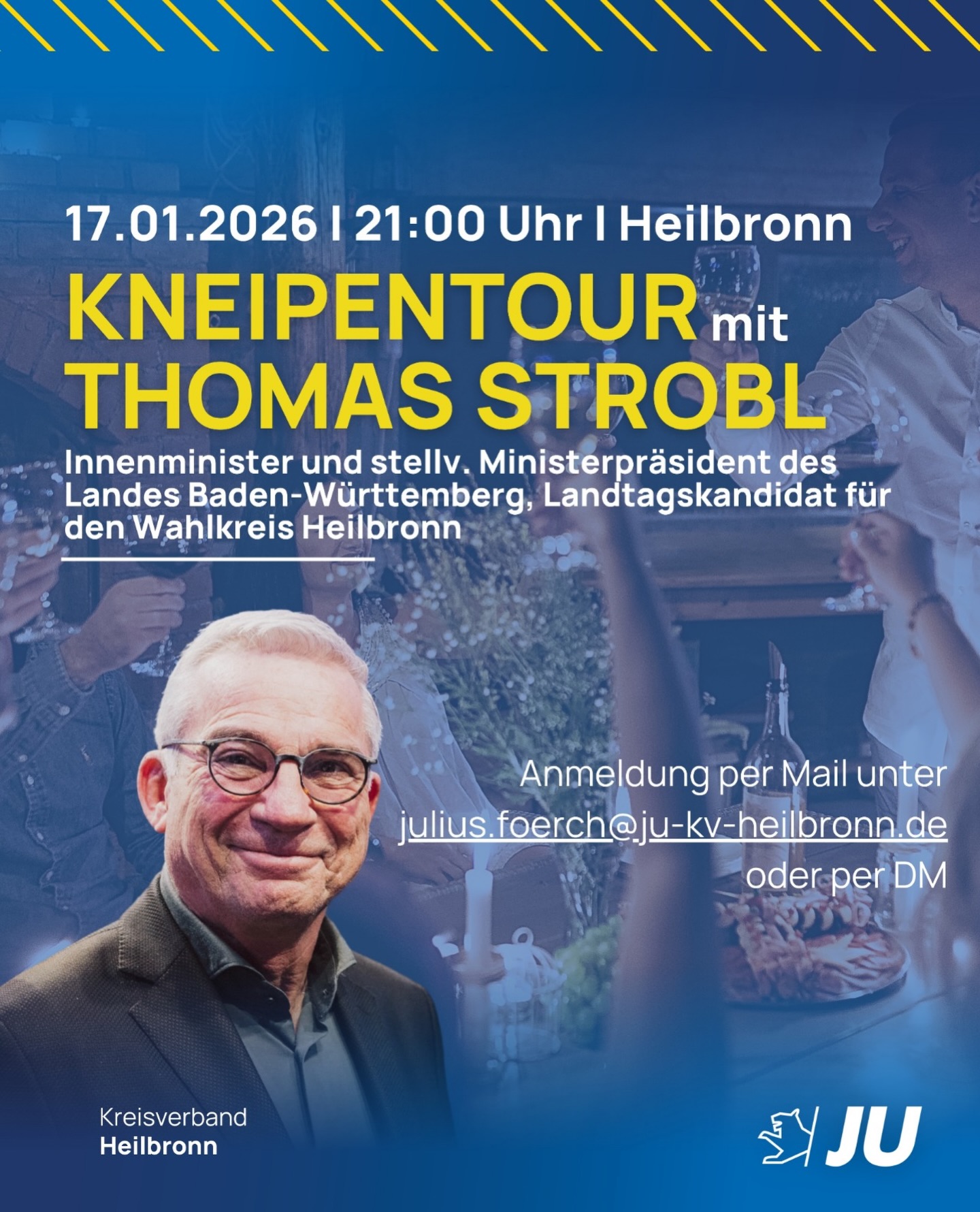 Dann bist Du bei uns genau richtig! Die Junge Union Heilbronn bietet Dir wirkliche politische Arbeit und einen durchweg aktiven Verband. Unser Kreisverband ist mit Abstand die größte politische Jugendorganisation im Stadt- und Landkreis Heilbronn. Mit unseren Gemeinde- und Stadtverbänden sind wir fest in allen Teilen des Land- und Stadtkreises Heilbronn verwurzelt! Viele unserer Mitglieder vertreten bereits in jungem Alter bürgerliche Politik in ihren Stadt-, Gemeinde- und Ortschaftsräten und haben somit tagtäglich Einfluss auf die Gestaltung ihres Lebensraums.
